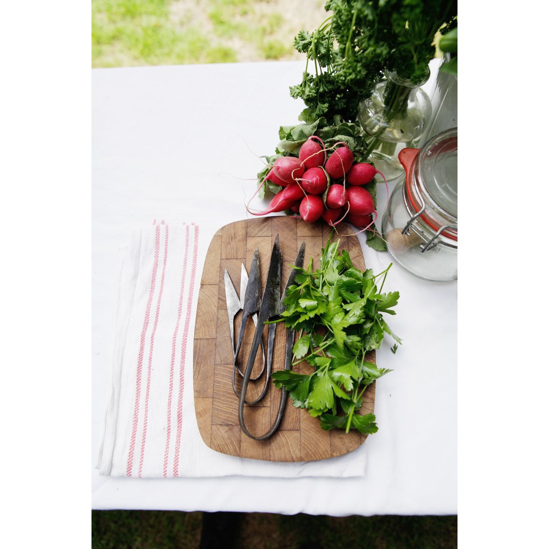 Scheren werden in dieser Form (sogenannte Bügelscheren) etwa seit dem 1. Jahrhundert v. Chr. hergestellt. Das besondere daran ist, dass es keines Gelenks bedarf und das Material elastisch genug ist, so das die beiden Klingen sich immer wieder von selbst öffnen. Diese Scheren lassen sich hervorragend als kleine Haushaltsschere, Kräuterschere oder Fadenschere benutzen.