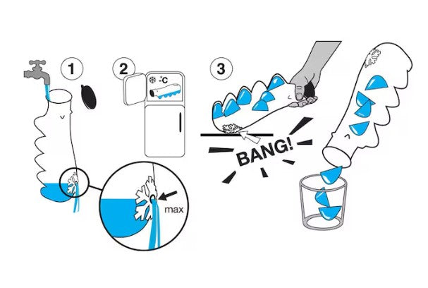 - "Bärenfüße" mit Wasser füllen, einfrieren, dann einfach kurz schütteln, um die Eiswürfel zu lösen.