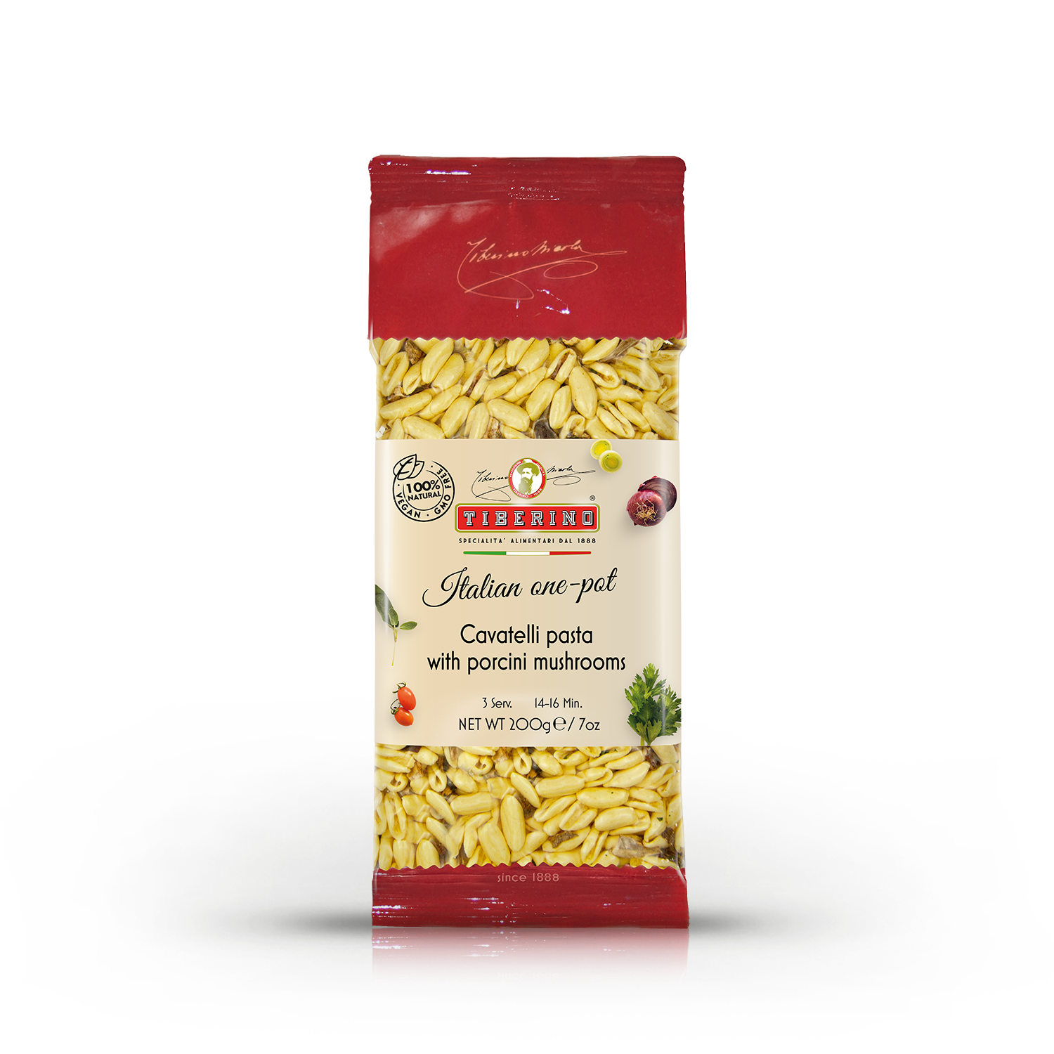 Cavatelli-Nudeln mit Steinpilzen, kochfertige italienische Pasta - One Pot