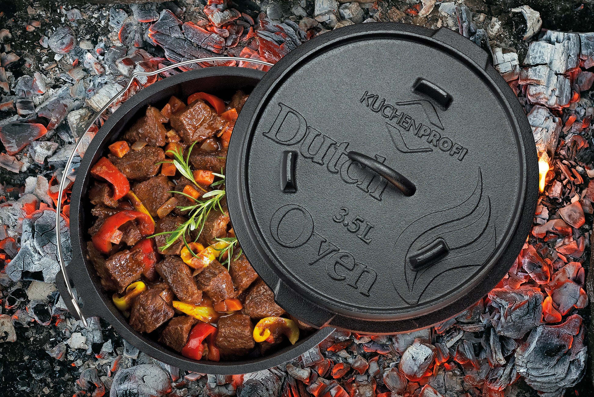 - Der massive gusseiserne Dutch Oven speichert die Hitze optimal