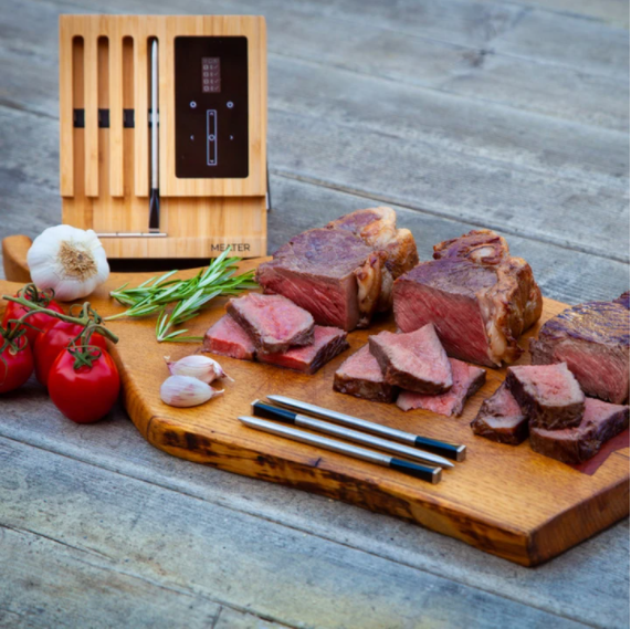 MEATER+ ist das erste komplett kabellose smarte Fleischthermometer. Mit der zusätzlichen MEATER App gelingen saftigste Steaks, Hähnchen, Truthahn, Fisch oder andere Fleischsorten jedes Mal perfekt, und das bei jedem Anlass.