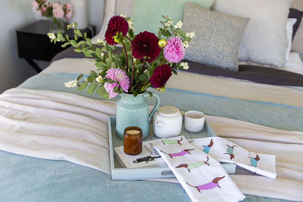 Dieses niedliche Geschirrtuch mit Dackel-Motiv bringt Spaß und Charme in Ihre Küche. Das fröhliche Design kombiniert verspielte Tierliebe mit praktischer Funktionalität – perfekt für alle Hundefreunde und Liebhaber einzigartiger Küchenaccessoires.