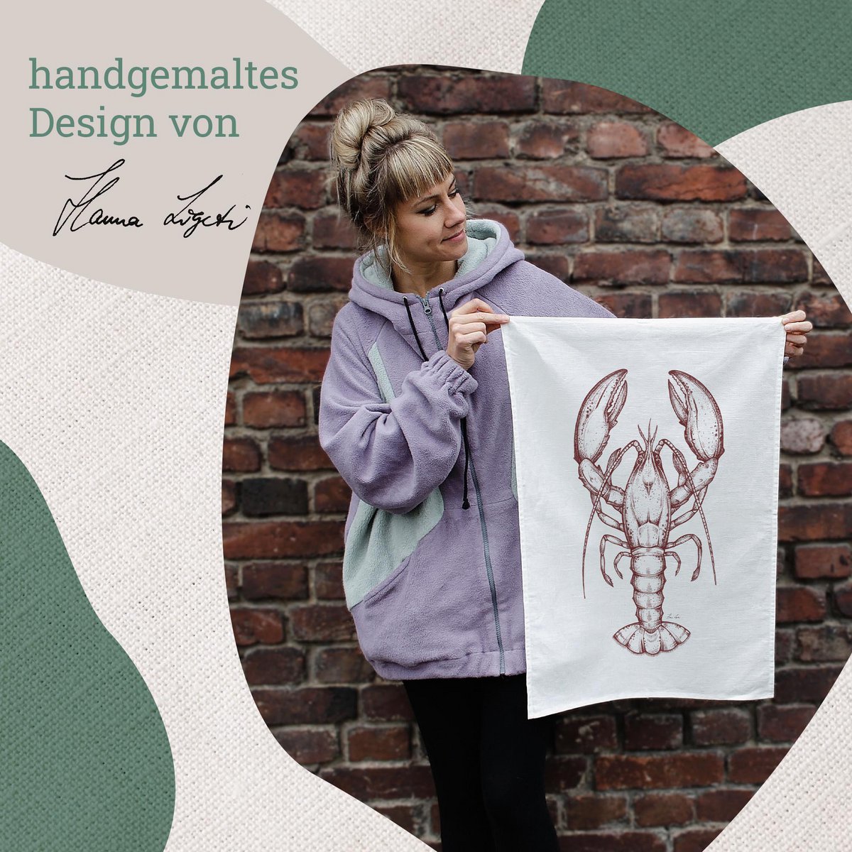 Art Up your Küchenzeile: Geschirrtuch-Set "Hummer & Schwertfisch"Produktinformationen:• 2er-Set bestehend aus den Motiven "Hummer" und "Schwertfisch"• strapazierfähige Küchenhandtücher aus Halbleinen (55 % Leinen / 45 % Baumwolle)• in der EU produziert und lokal in Wuppertal für dich bedruckt• Größe: 70 x 50 cm• Der einseitige Druck ist hochwertig und farbintensiv• bei bis zu 60 Grad waschbar• zertifiziert mit dem ÖKO-TEX® Standard 100• Green Energy ProduktionAlles in trockenen Tüchern: Unsere schönen Geschirrtücher sind nicht nur robust, sondern auch noch nachhaltig. Der Druck ist hochwertig und hält Wäschen bei bis zu 60 Grad stand. Und das handgemalte Motiv unserer Künstlerin Hanna Ligeti sorgt dafür, dass dein neues Küchenhandtuch selbst beim Abhängen und Trocknen noch eine gute Figur macht. Sauber!