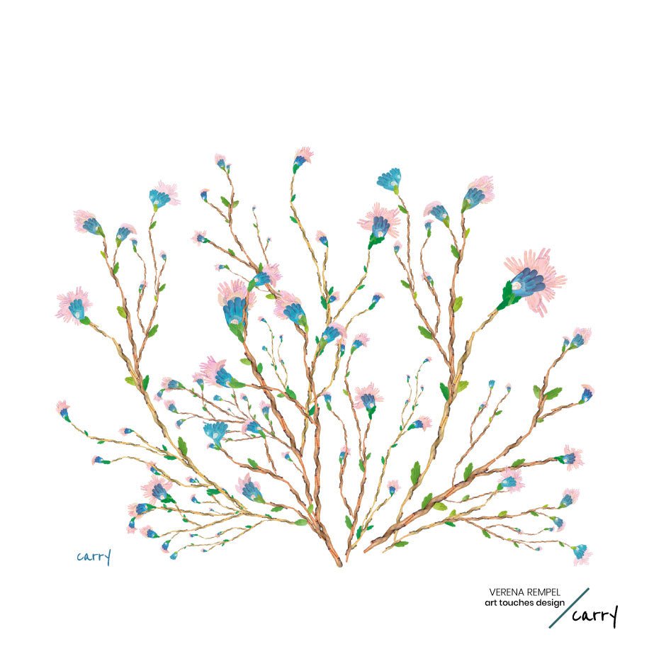 Das Motiv HANAMI auf der Glasflasche stammt von der Künstlerin Verena Rempel. Aus dem Japanischen übersetzt bedeutet HANAMI "Blüten betrachten". Schau dir die Kirschblüten einmal genauer an, vielleicht entdeckst du ein künstlerisches Detail.