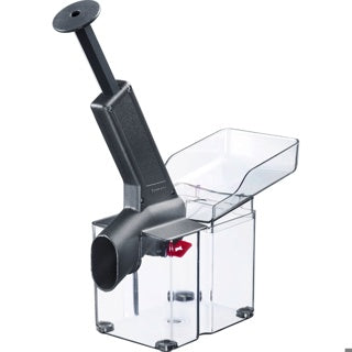 Die schräggestellte Schütte sorgt dafür, dass die Kirschen kontinuierlich und störungsfrei nachrutschen. Die große Kernkassette fängt die Kirschkerne zuverlässig auf, während der integrierte Spritzschutz für eine saubere Arbeitsumgebung sorgt. Die ergonomische Form in Kombination mit der griffigen Spezialbeschichtung der Black Edition garantiert komfortables Arbeiten – auch bei großen Mengen.
