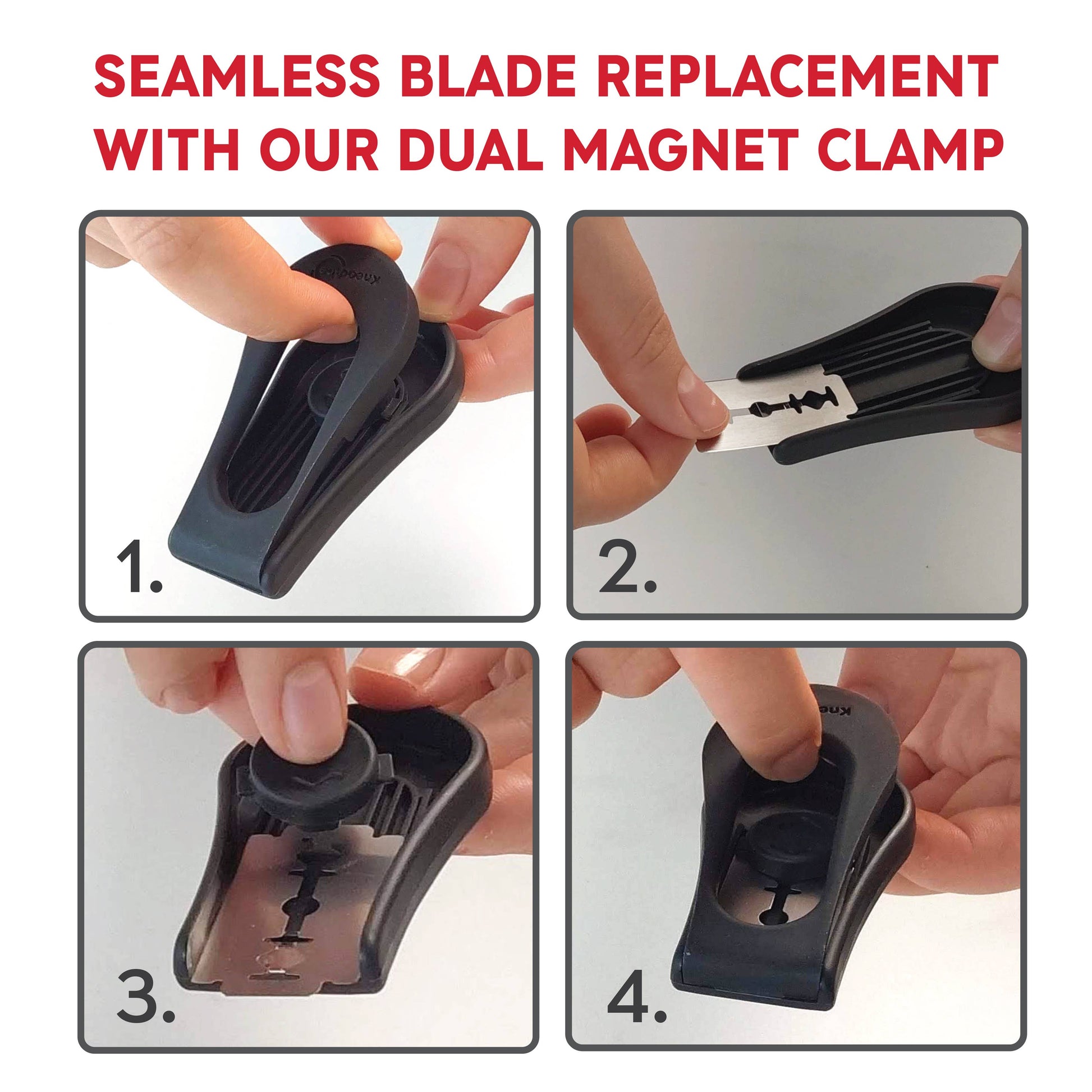 Zwei Magnetpunkte fixieren die Klinge sicher im Gehäuse und verhindern ungewolltes Verrutschen – für maximale Kontrolle beim Einschneiden.