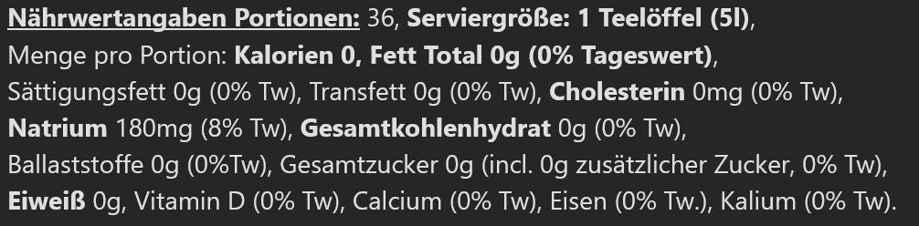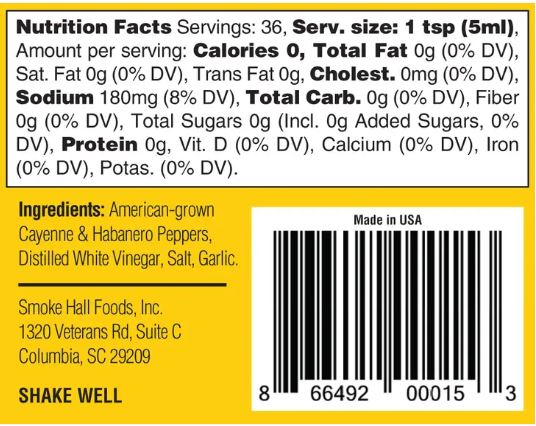 Zutaten: In den USA angebaute Cayenne und Habanero-Paprikaschoten, destillierter weißer Essig, Salz, Knoblauch
