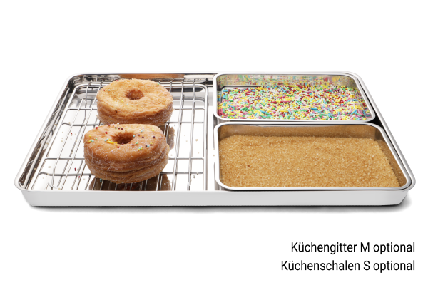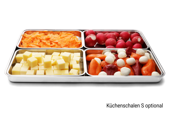 Die Küchenschale Simplo aus hochwertigem Edelstahl ist die ideale Lösung zum Auskühlen, Auftauen und Verzieren von Lebensmitteln.