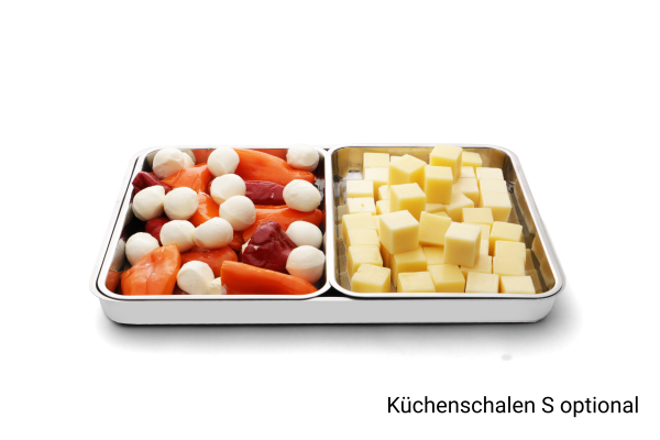 ✔ Modulares System – Kombinierbar mit passenden Gittern und weiteren Größen. Größe M passt 2x in Größe L und kann mit Küchenschalen oder Gittern der Größe S unterteilt werden.