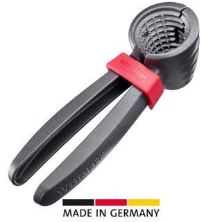 Mit dem modernen Made-in-Germany-Nussknacker »Westmark Nussprofi« aus leichtem Aluminium, knacken Sie mühelos verschiedene Nusssorten und Mandeln. Dank seiner extra großen Öffnung kann er auch größere Walnüsse mühelos aufbrechen - und das sauber, denn die Schalensprlitter werden im Gehäuse aufgefangen. Der Federmechanismus sorgt außerdem für eine einfache Handhabung und dank der Klammer lassen sich die Zangen - für eine platzsparende Aufbewahrung - zusammenhalten. Tipp: Der Nussknacker kann zudem als Sektzange verwendet werden – probieren Sie es aus!