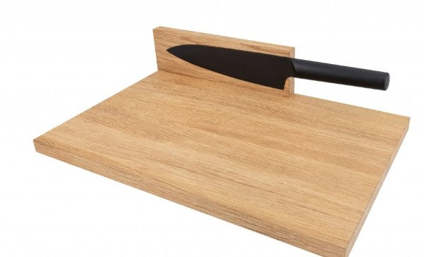 Zutaten im Eichenholz haben eine antibakterielle Wirkung. Der Einsatz beider Seiten ermöglicht sicheres und komfortables Arbeiten. Magnetischer Halter an der schmalen Seite hält das Messer in "Stand by"-Position.