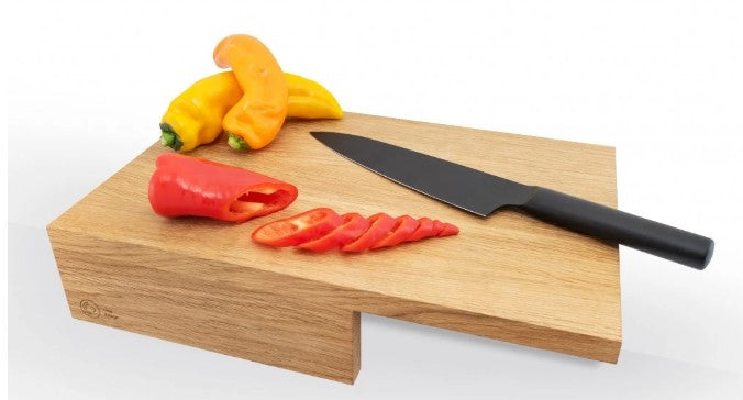Holz bleibt erste Wahl in der Küche, vor allem bei der Zubereitung von Lebensmitteln mit Messern. Das Board entwickelt eine individuelle Patina mit Verwendung. Zutaten im Eichenholz haben eine antibakterielle Wirkung. Der Einsatz beider Seiten ermöglicht sicheres und komfortables Arbeiten. Magnetischer Halter hält das Messer in "Stand by"-Position.