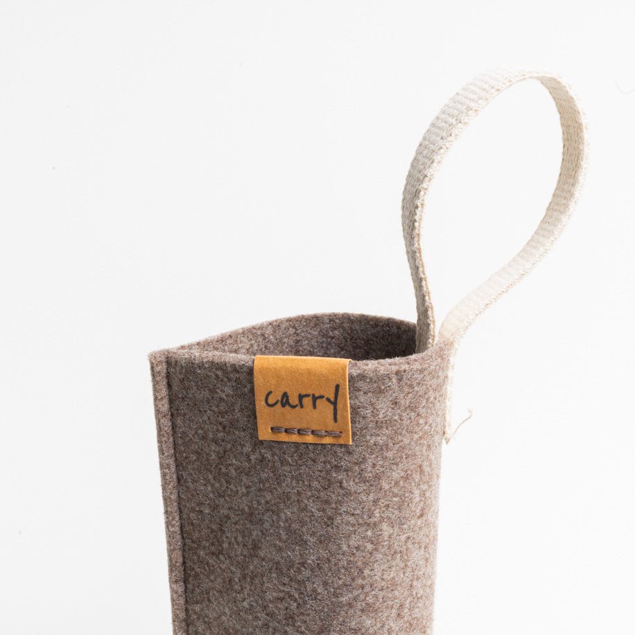 CARRY Your Bottle – Trage deine Trinkflasche in deiner neuen Upcycling-Flaschenhülle. Der Filz Sleeve aus recycelten PET-Flaschen ist der perfekte Schutz für deine Trinkflasche aus Glas. Eine Trageschlaufe aus Naturbaumwolle ergänzt das minimalistische Design der Schutzhülle.