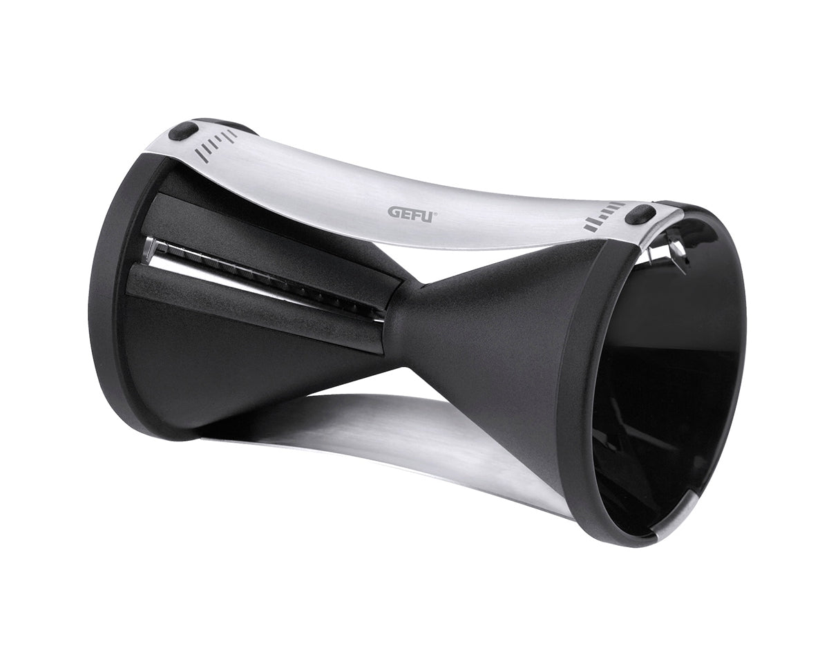Das Prinzip des Anspitzers nutzend, verwandelt der Spiralschneider SPIRELLI® Möhren, Rettich, Gurken und sonstige feste Gemüsesorten im Handumdrehen in appetitliche Endlos-Spiralen – für vegetarische Gemüsepfannen, für gesunde Rohkostsalate und als appetitliche Dekoration zum Sofort-Verzehr! Zwei unterschiedliche breite Spiralen liefern die japanischen Spezialmesser aus Edelstahl, der Restehalter sorgt für wenig Abfall und sichere Anwendung. Und nach dem Gebrauch: ab in die Spülmaschine. Ein Küchenassistent, ideal als Geschenk für Gemüse-Freaks! Praktisch, pfiffig!