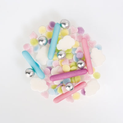 Verleihe deinen Backkreationen einen verspielten und fröhlichen Look! Das Streudekor „Sweet Sky“ ist die perfekte Dekoration für Torten, Muffins, Donuts, Kuchen und viele weitere Süßspeisen. Die liebevoll zusammengestellte Mischung aus Wolken, Herzen, Stangen und Perlen sorgen sofort für einen süßen Hingucker auf jedem Dessert.