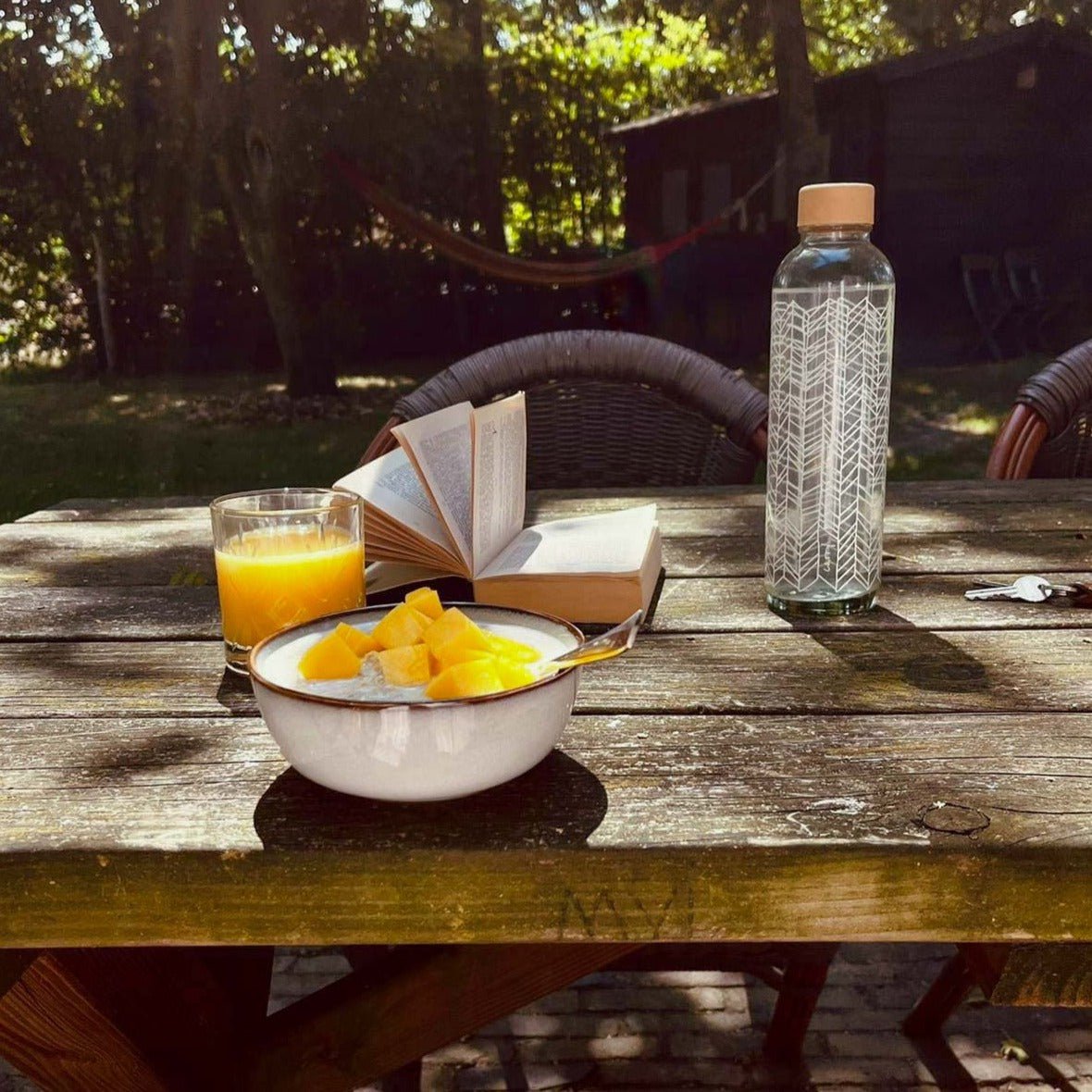 Blattadern versorgen das Blatt mit Wasser und geben dem Blatt Stabilität. Und so erinnern dich auch die kleinen weißen Blattadern auf der Trinkflasche jeden Tag daran, genug zu trinken und dabei neue Kraft zu schöpfen. Mit seinem verspielten und doch in schlichtem Weiß gehaltenem Muster verbreitet das Motiv STRUCTURE OF LIFE Natürlichkeit und Schönheit. Die Höhe der Flasche erstreckt sich über 26 cm und mit einem Durchmesser von 7,3 cm sowie einem Volumen von 700 ml ist die Trinkflasche handlich genug, um dich bei Spaziergängen durch die Natur zu begleiten und mit ausreichend Wasser zu versorgen.