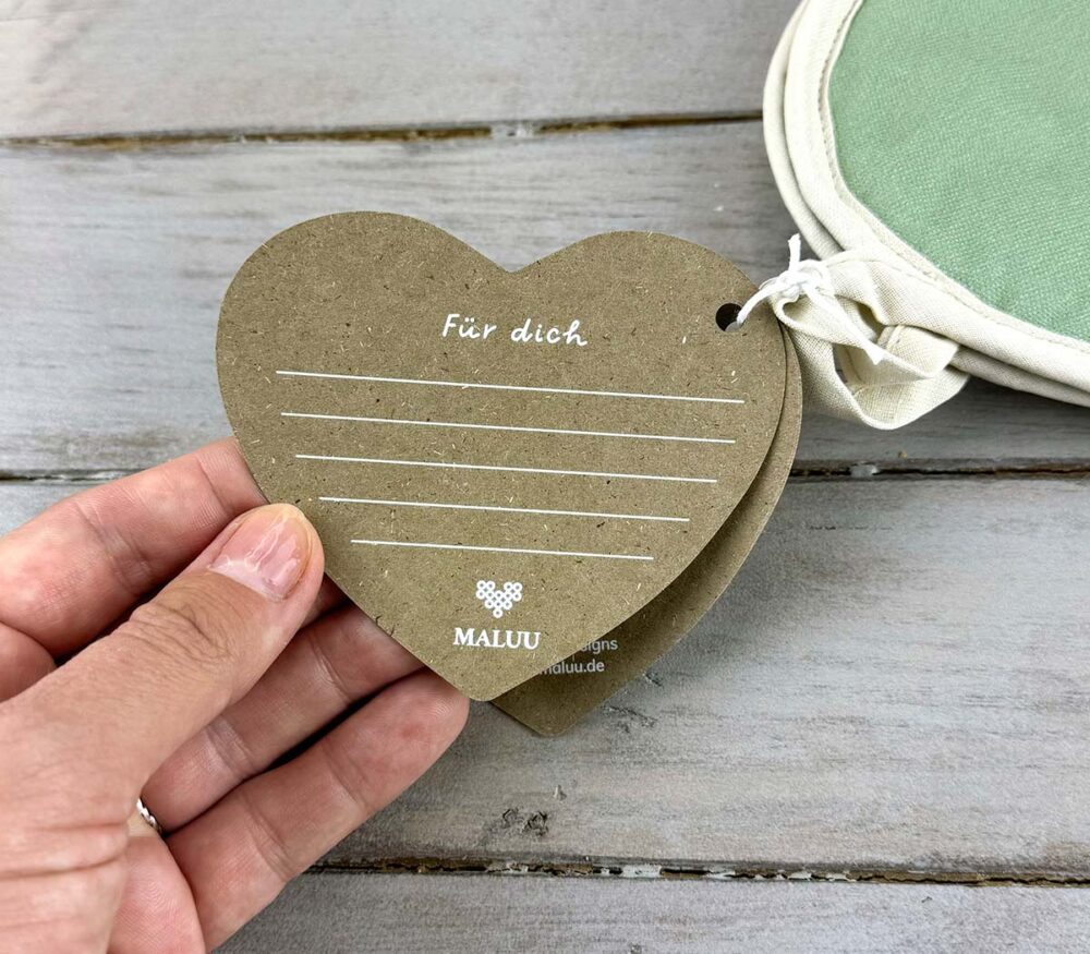 Ein besonders hübsches Detail: Die seitliche Aufhängeschlaufe sorgt für eine dekorative Optik, und der Geschenkanhänger in Herzform macht das Set sofort bereit zum Verschenken – perfekt für alle, die das Leben mit Liebe und Stil genießen.