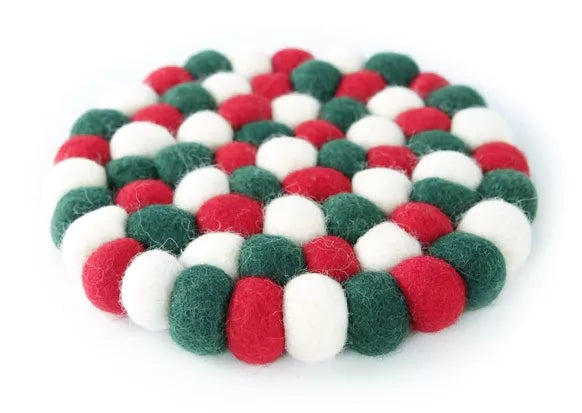 Topfuntersetzer 17 cm rund Filzkugel rot-weiss-grün