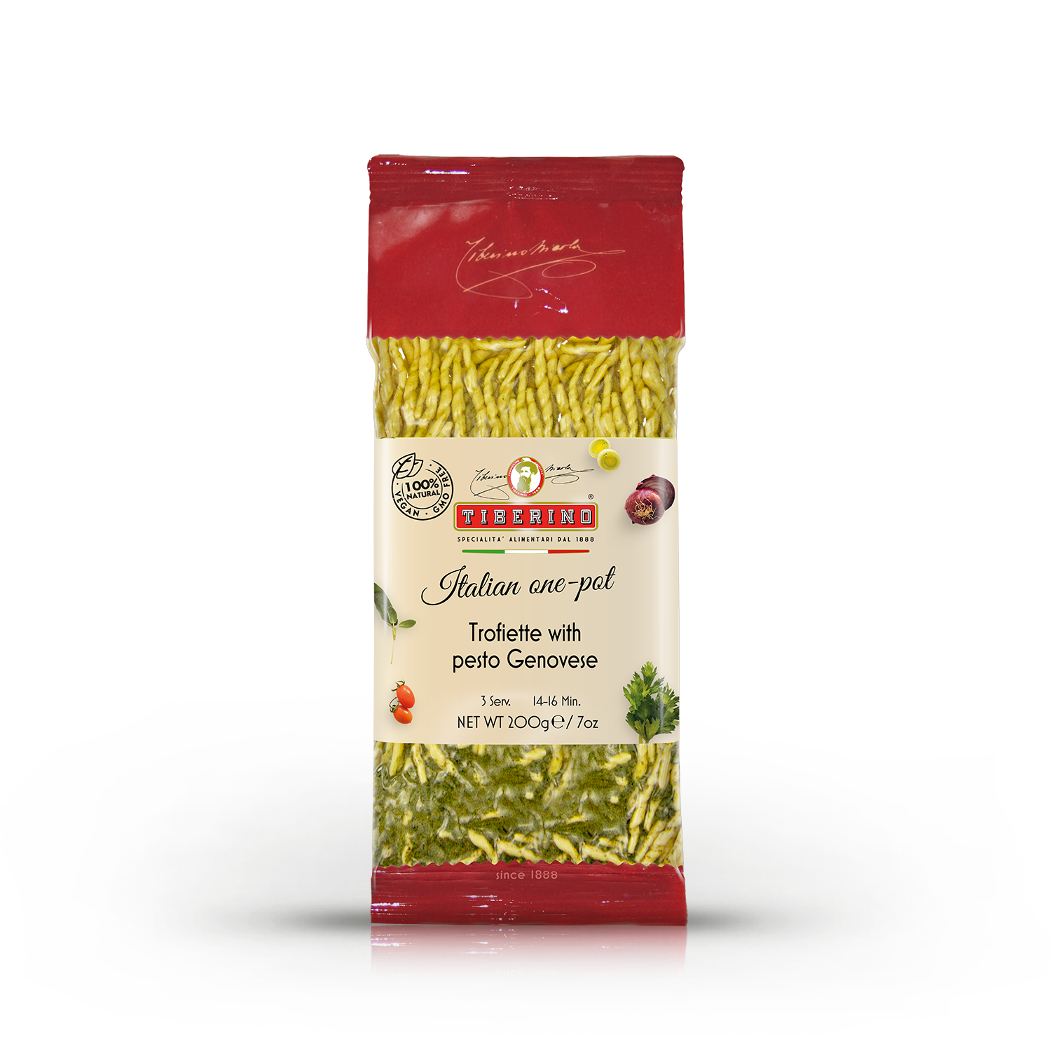 Trofiette-Nudeln passen perfekt zu Basilikum-Pesto Genovese, das nach einem authentischen Rezept aus Genua hergestellt wird. Dieses so leckere Rezept enthält keinen Käse und ist daher auch für Veganer geeignet. Alles, was Sie brauchen, um ein köstliches italienisches Nudelgericht zuzubereiten, ist im Paket enthalten. 100 % natürliche Zutaten und erstklassige italienische Pasta.