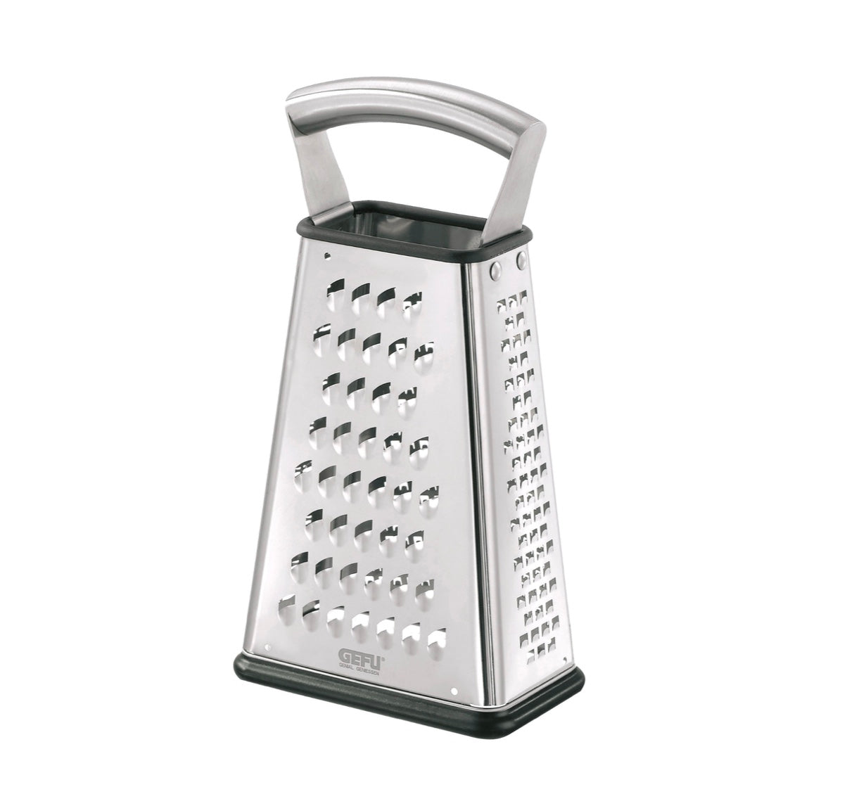 - Vier Reibeflächen: - Feine Reibe für z.B. Schokolade - Gemüse- /Weichkäsereibe - Rohkost- /Hartkäsereibe - Hobel