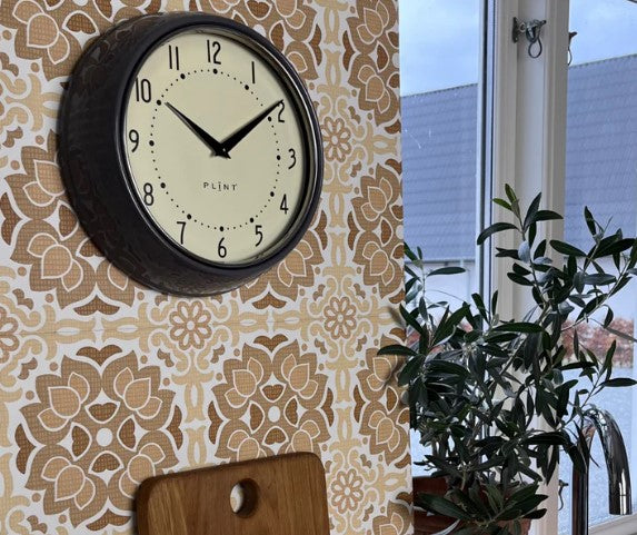 Die Wanduhr hat ein glattes Uhrwerk ohne den Tick-Tack-Sound Material: Metall und Glas Durchmesser: 23 cm Höhe: 7 cm Sie wird von einem 1,5V AA Akku (nicht im Lieferumfang enthalten) angetrieben