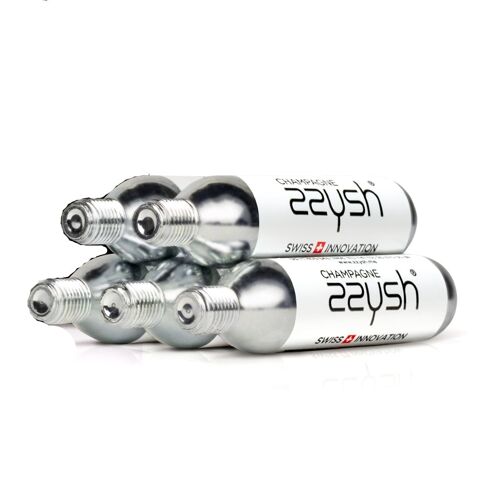 WARUM ZZYSH® CHAMPAGNERKARTUSCHEN? Nachfüllkartuschen funktionieren nur mit dem zzysh® Champagner-Konservierungssystem. Sie enthalten eine reine Mischung aus Argon/CO2-Gas für Lebensmittel. Behält den ursprünglichen Geschmack und das Aufbrausen für mehrere Wochen. Die Flasche wird mit einer Argon/CO2-Mischung unter Druck gesetzt vier Verwendungen