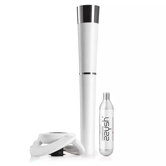 WARUM ZZYSH® CHAMPAGNER? Es setzt die geöffnete Flasche unter Druck und schützt den Champagner perfekt vor Oxidation Behält das natürliche Aroma und die Spritzigkeit des Champagners über Wochen hinweg Ersetzt die in der geöffneten Flasche vorhandene Luft durch eine reine Mischung aus Argon/CO2-Gas Ein einfach zu bedienendes System, Innovatives Schweizer Design, hergestellt aus hochwertigen Materialien. Ein perfektes Geschenk für alle Champagnerliebhaber